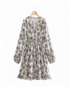 New Spring Women Elegant Floral Print Sashes Shirt Dress Female Long Sleeve...