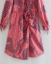 Hot Sale Women Geometric Print Knot Decoration Mini Dress Female Long Sleeve...