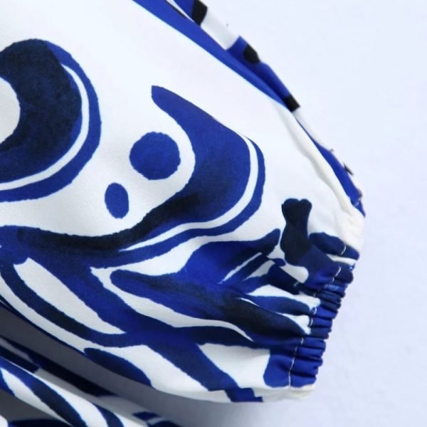 Hot Sale Women Geometric Print Knot Decoration Mini Dress Female Long Sleeve...