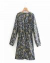 Hot Sale Women Geometric Print Knot Decoration Mini Dress Female Long Sleeve...
